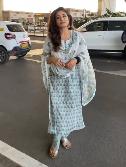 BOLLYWOOD HAND BLOCK PRINT COTTON KURTI SET