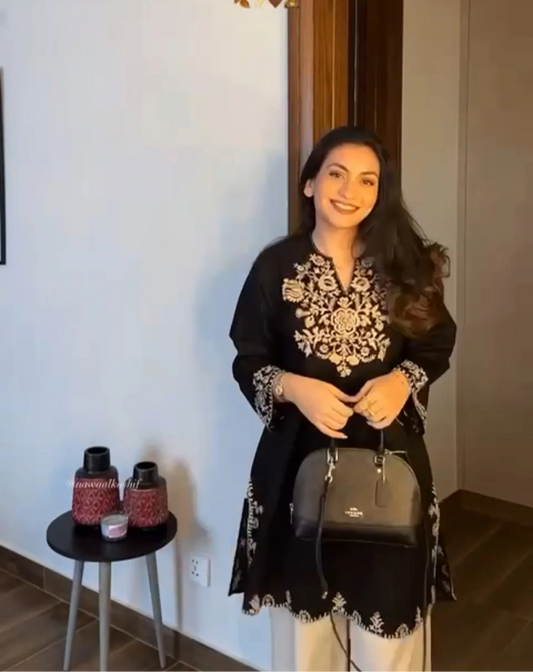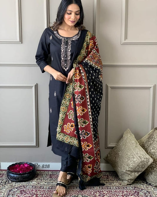 Black Embroidery Cotton Kurta Set